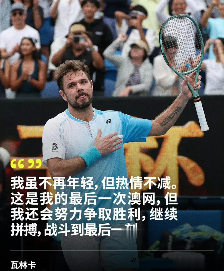 在这个比赛日的另一场比赛中,终末一次训导澳网的2014年赛会冠军瓦林卡死战3小时20分钟,以5-7、6-3、6-4 、7-6(4)逆转塞尔维亚选手杰雷,这是他继2021年之后再次得回澳网正赛的得胜,这一等足足当年了5年。40岁296天的他也成为在澳网取胜第二年长的球员,仅次于40岁326天的卡洛维奇。