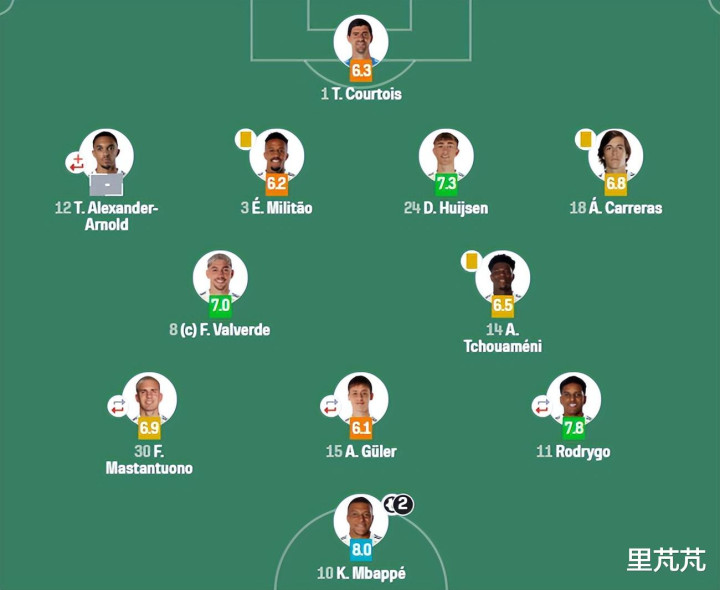 到了下半场之后,卡瓦哈尔和对方起了卤莽,被裁判径直罚下,这成了比赛关键飘舞。好在维尼修斯变成了点球之后,姆巴佩再次射中,匡助皇马有惊无险地拿到了3分。