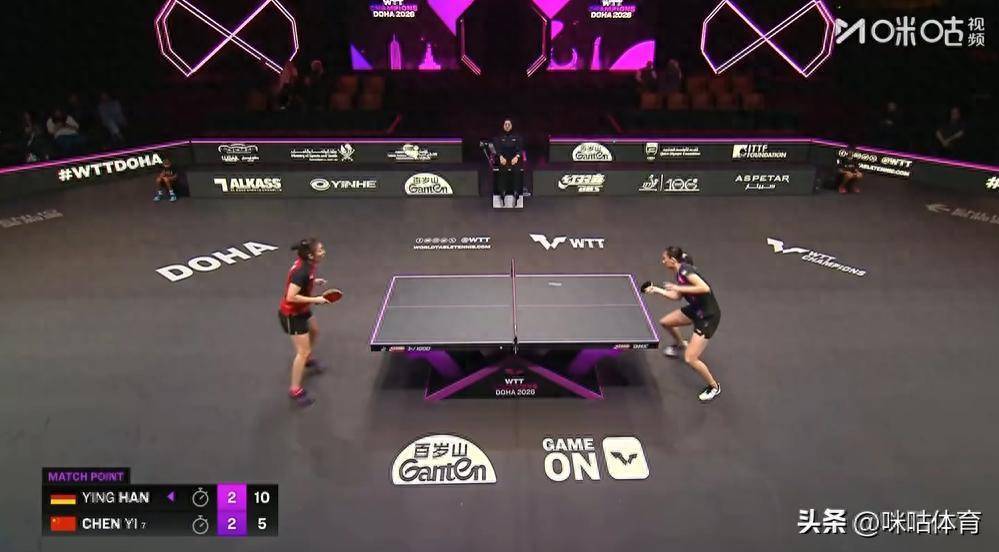 首局(11-4):陈熠皆备压制韩莹,阁下快速流毒和落点变化让削球宿将难以符合,仅用 12 分钟就漏洞拿下。