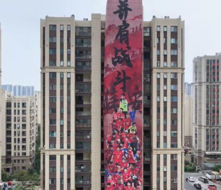 记者严防到,赛前淮安一高楼外吊挂了巨幅TIFO(海报)为淮安队加油谀媚,海报的高度险些秘籍一栋楼,格外翔实。隔邻一商户也证明了这件事。